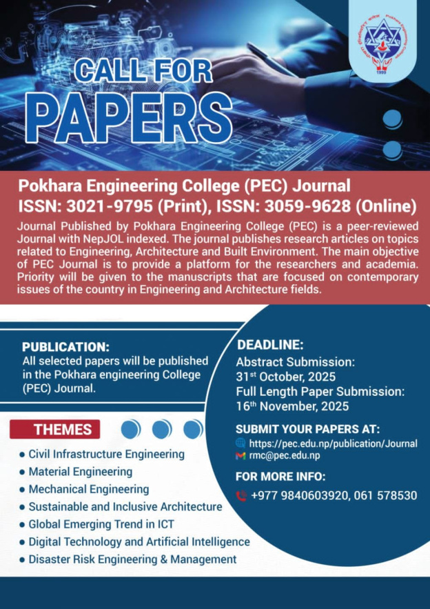 Pokhara Engineering College (PEC) , established in 1999 AD, is the pioneer college of Western region for providing engineering education. It runs various engineering programs at Master, Bachelor and Diploma level under affiliation of Pokhara University and CTEVT.